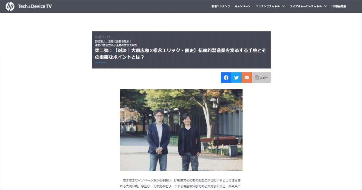 日本HP様が配信する「Tech&Device TV」にて、特集第二弾が公開されました。